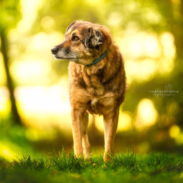 Im Tierheim zeige ich mich unauffällig, laufe manierlich an der Leine, bin autofest, stubenrein, verträglich mit Artgenossen nach Sympathie.
